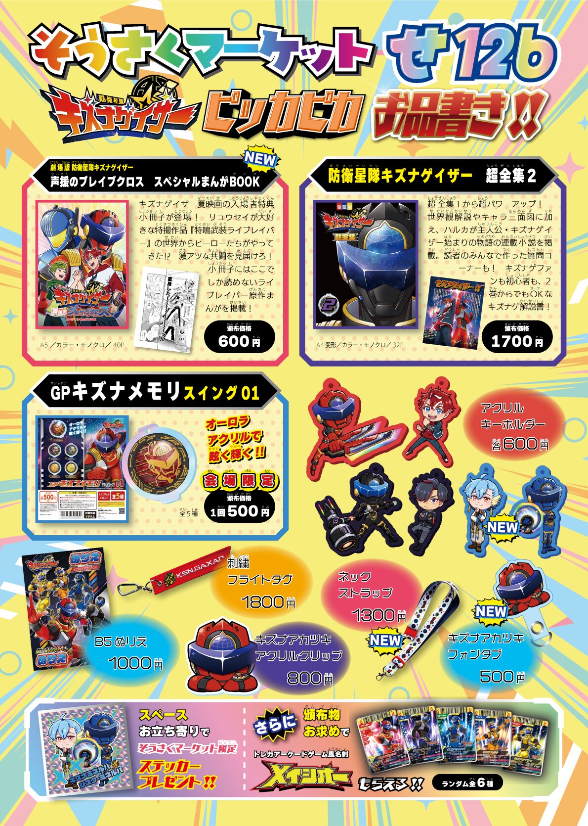 スペースお立ち寄りで【 キズナミネルバ/シズクの無配ステッカー 】、頒布物購入で【 メイシオー 】ももらえる!