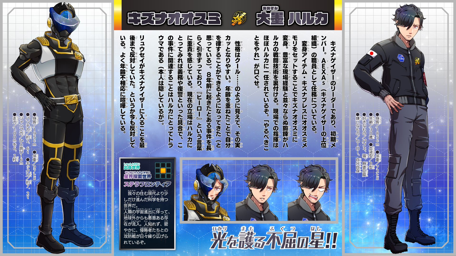 キズナゲイザーのリーダーであり、初期メンバー。AEXAs(キズナゲイザーの上位組織)の職員として任務についている。
