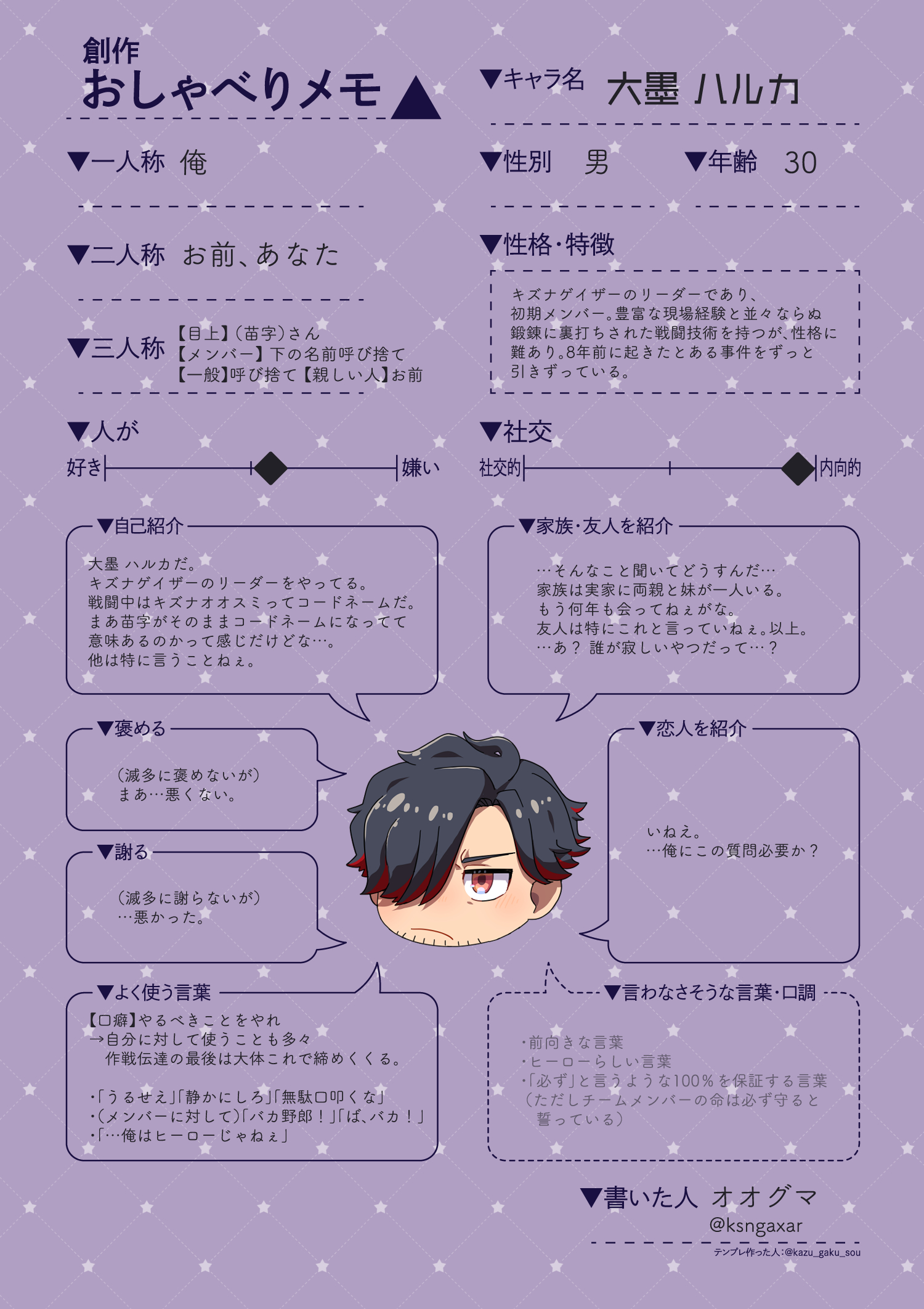 性格はクール……のように見えて、その実カッとなりやすい。年齢を重ねたことで自分を律することができるようになってきた(と思っている)
