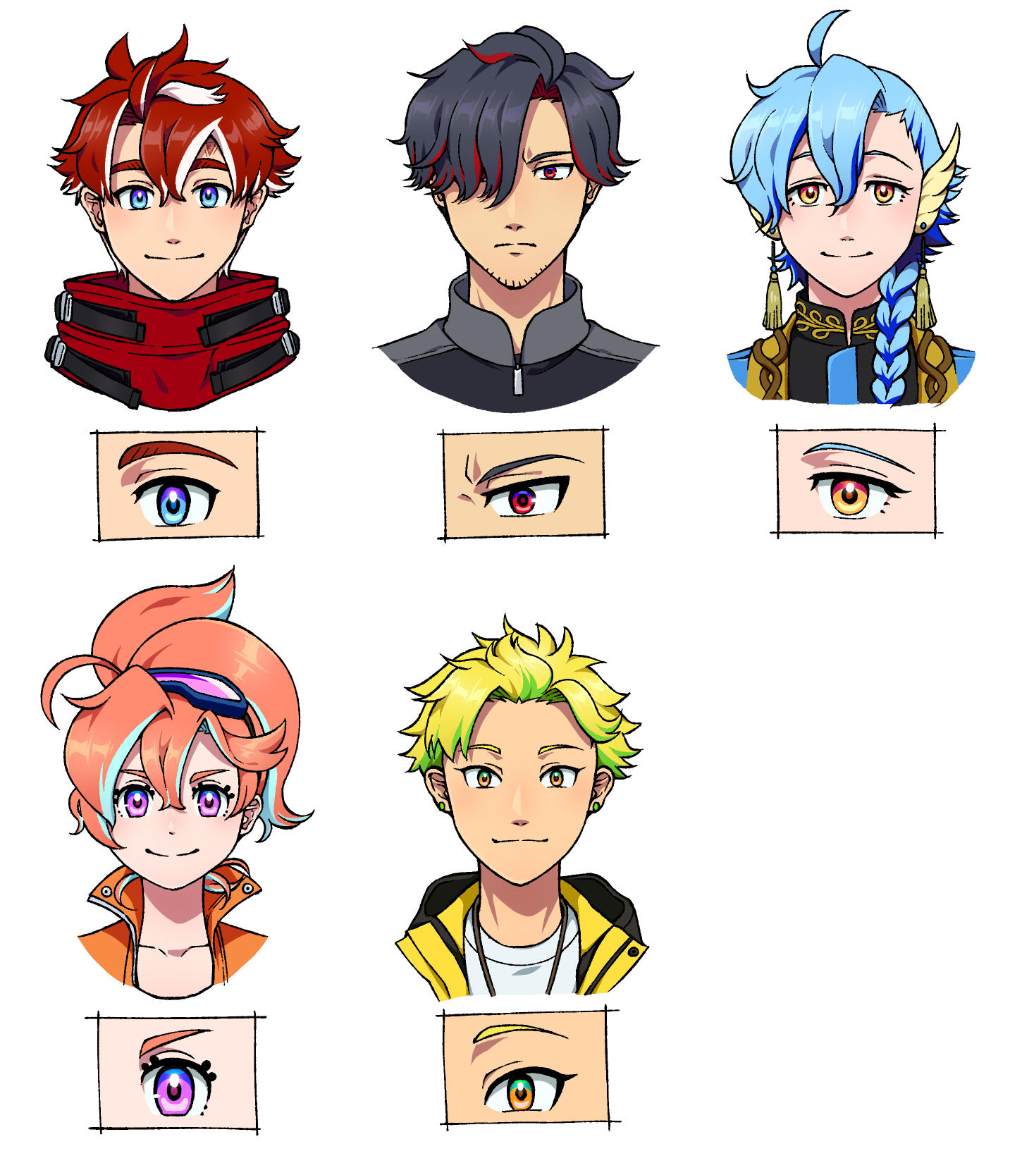 ライドカメンズの一部キャラの瞳の色がツートンになってるのかわいくていいな~と思ったのをきっかけに、そもそも全体的な基本色設定を見直したかったので設定し直しました!彩度高めで鮮やかになったのでは